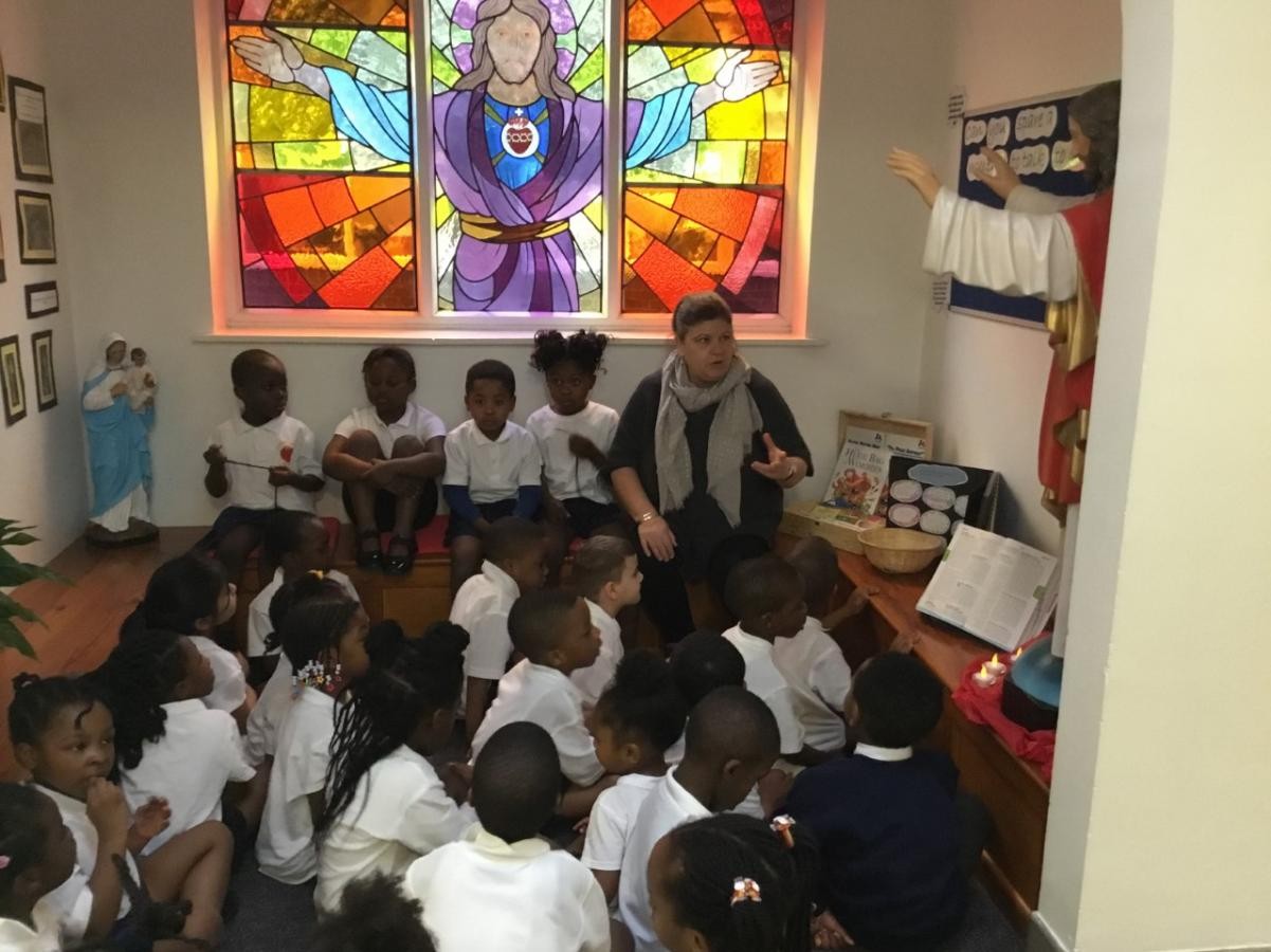 Mrs Craig spent time with FY explaining why the Sacred Heart of Jesus is so important to our school. They took some time to talk to God in this peaceful place.