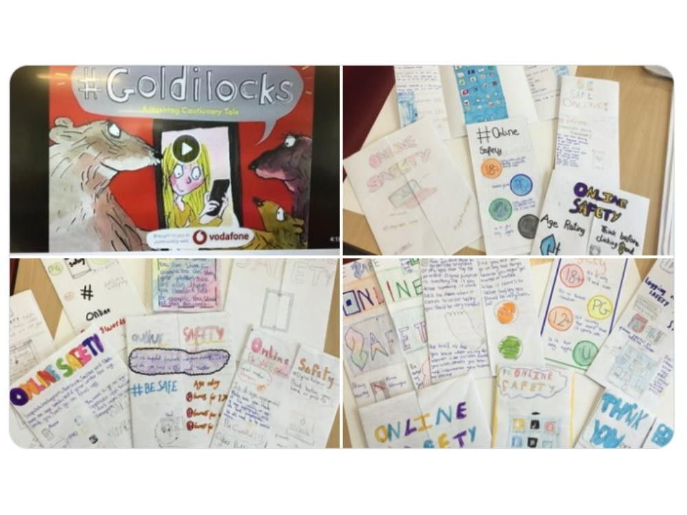 Year 6 listened to an online safety version of Goldilocks and designed online safety leaflets instructing people how to stay safe online